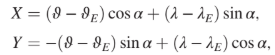 latitudinal and longitudinal displacements, the map is displayed by means of an equidistant conic projection (standard parallels: −10° and −40°; origin: λ0 1⁄4 −50°, θ0 1⁄4 −30°) [32].