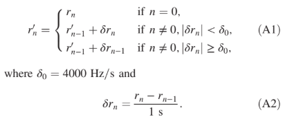 The reconstruction is carried out both in the forward direction n 1⁄4 1; …; N, where N is the number of samples within the segment, and in the backward direction, obtained by recasting n → N − n þ 1. For each nth sample, we retain the largest between the two values of r0 n obtained through the forward and backward reconstructions. In the second step, the algorithm compares the reconstructed rate r0 n with the measured one rn: if the difference overcomes 215, namely, half of the overflow limit, the rate is corrected according to